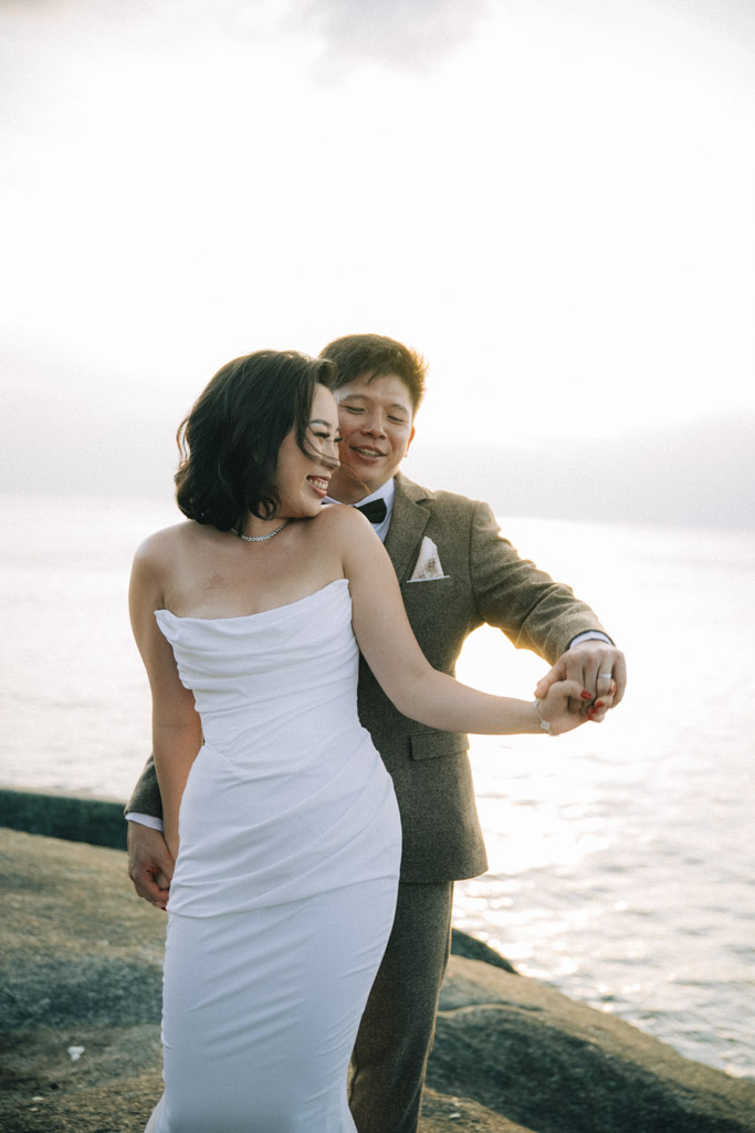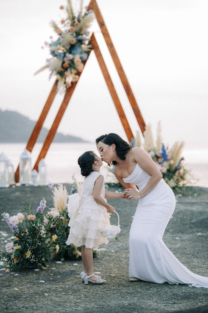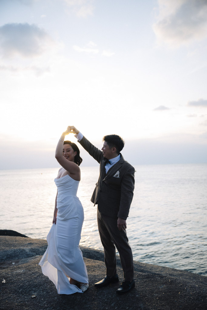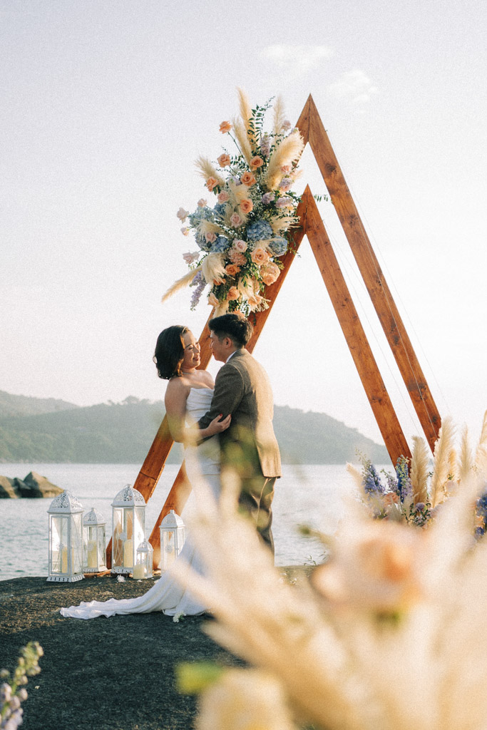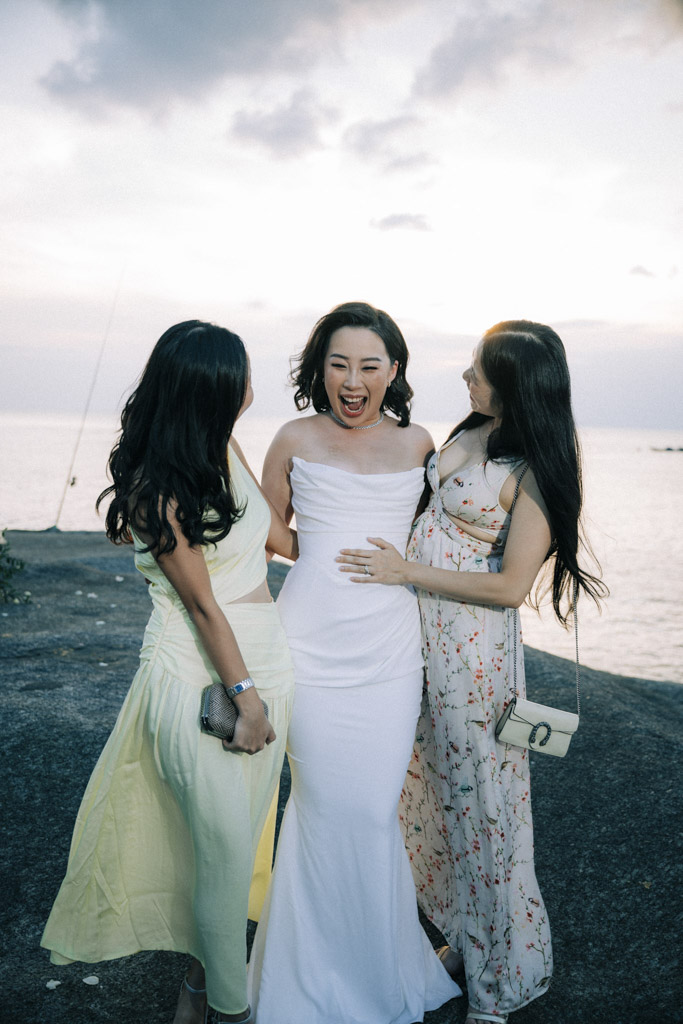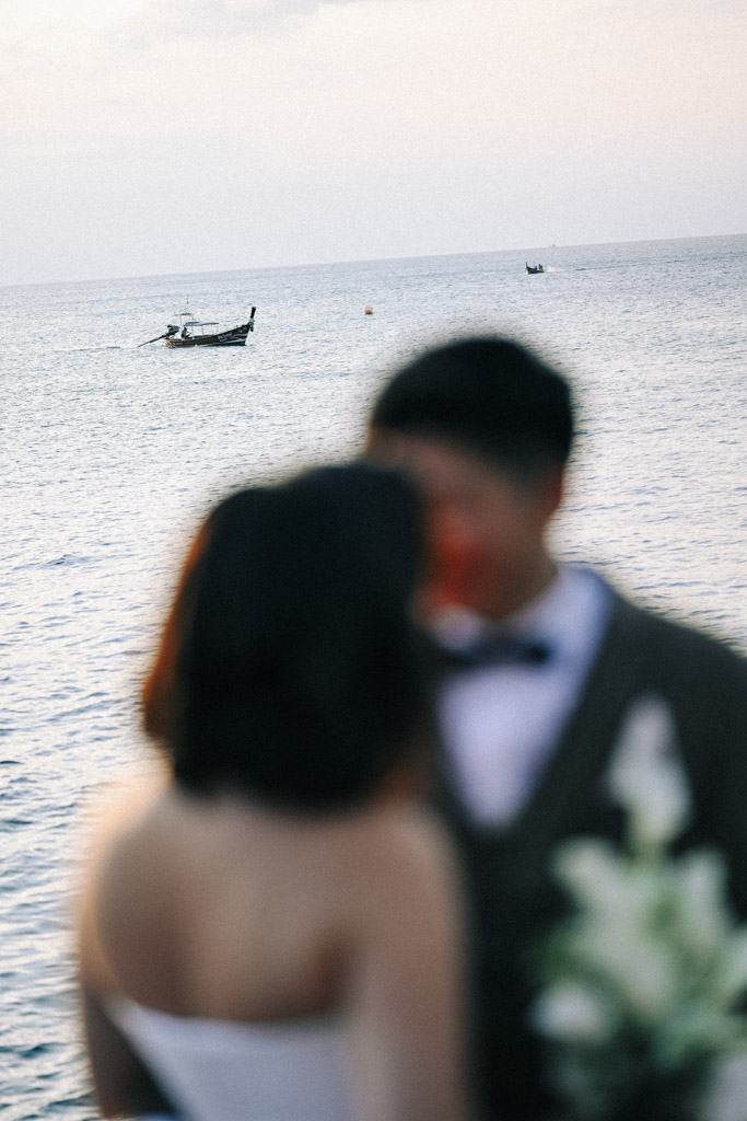 As a Phuket wedding photographer, capturing weddings at Kata Rocks always feels cinematic. The clean white design, infinity pool backdrop, and golden hour light create an effortlessly elegant atmosphere for intimate celebrations in Phuket.
