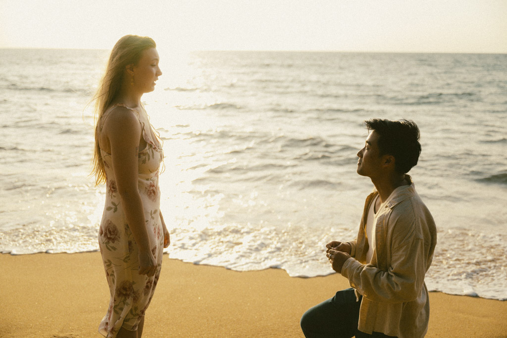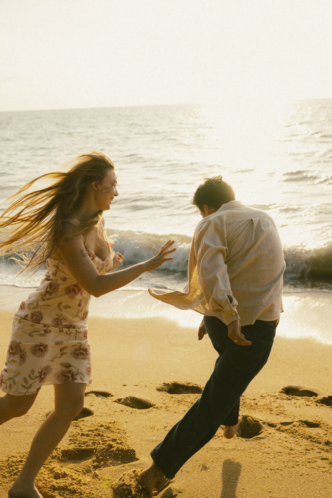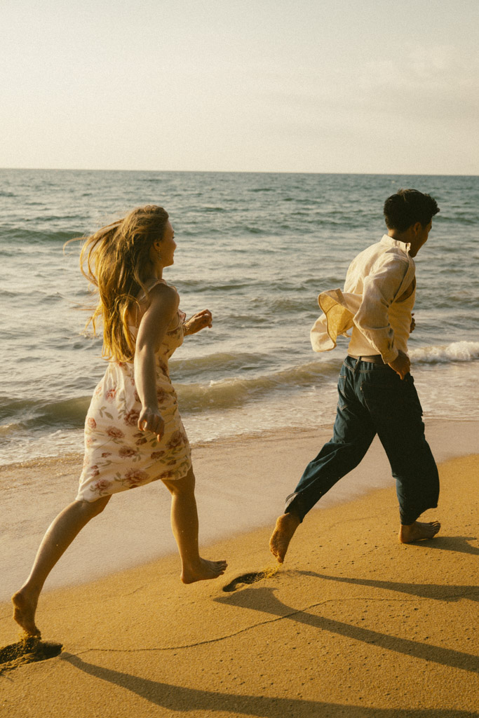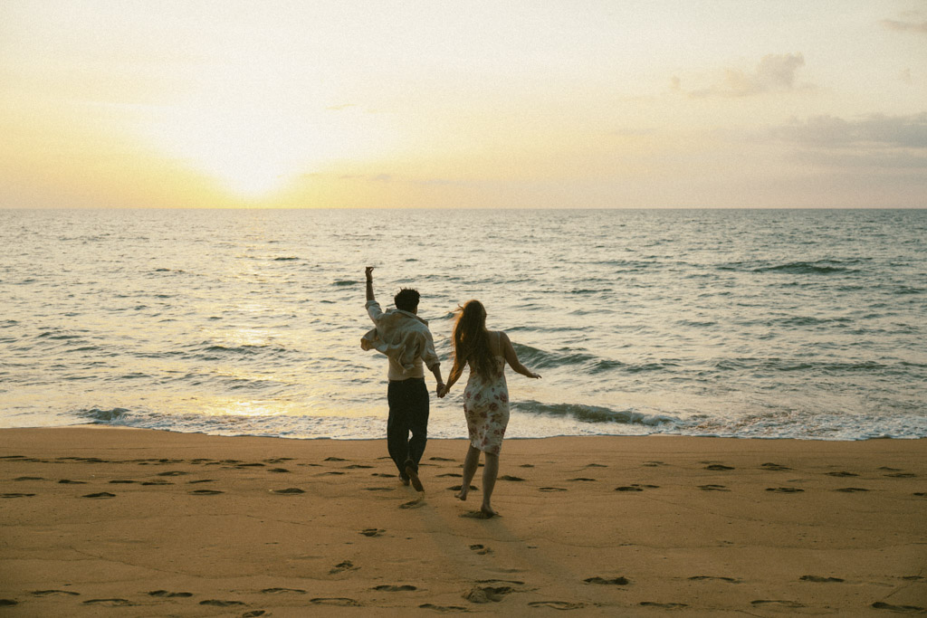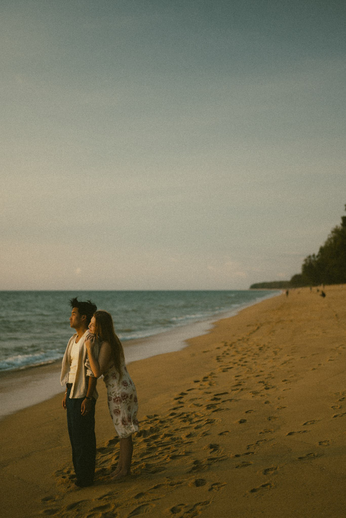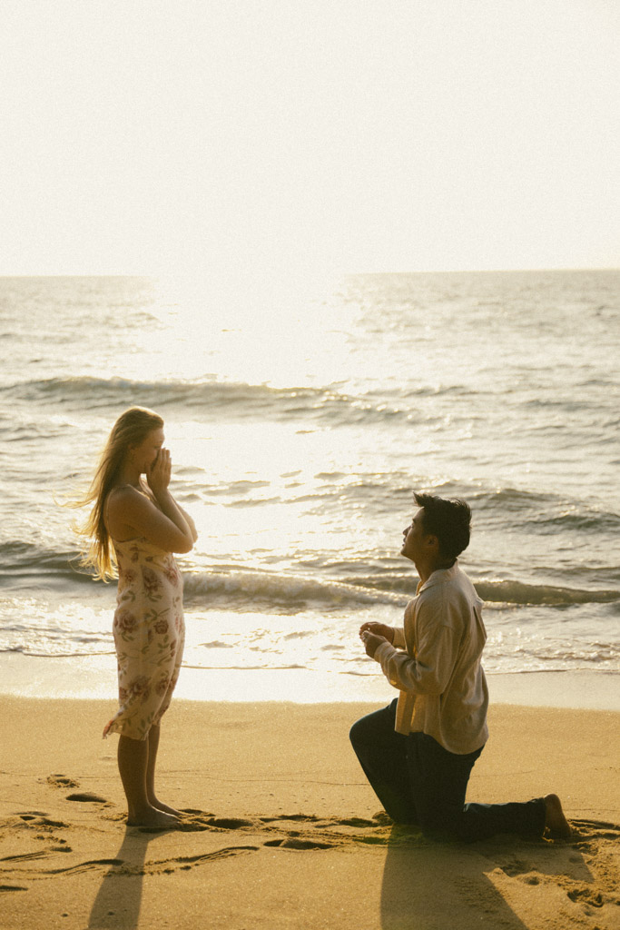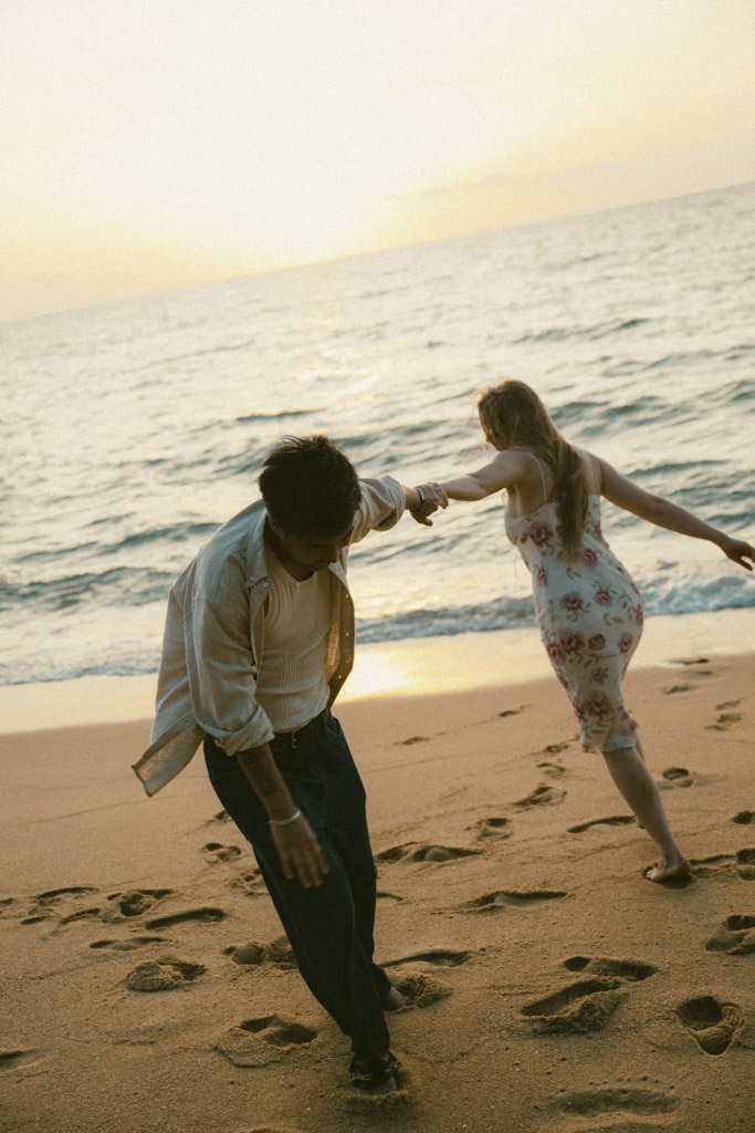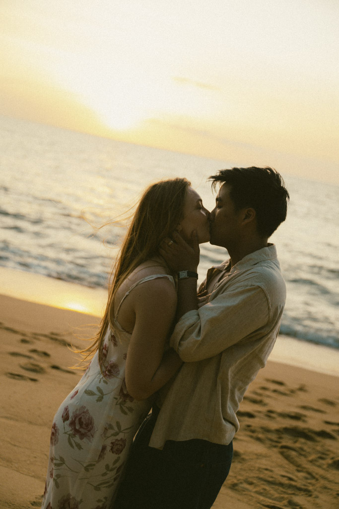 Phuket proposal photographer capturing romantic sunset beach engagement photoshoot in Phuket Thailand