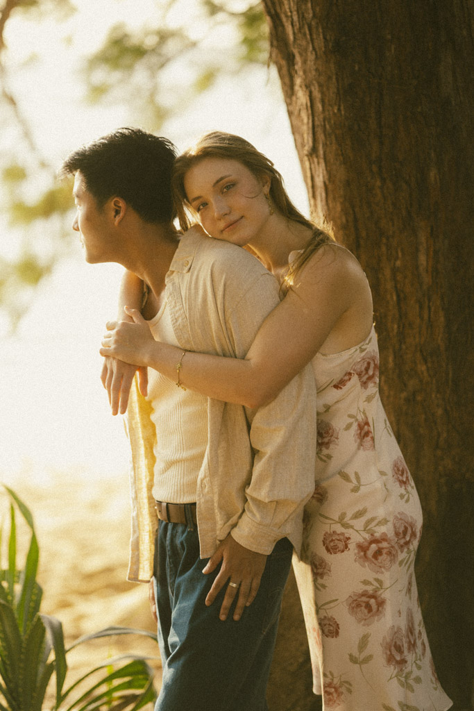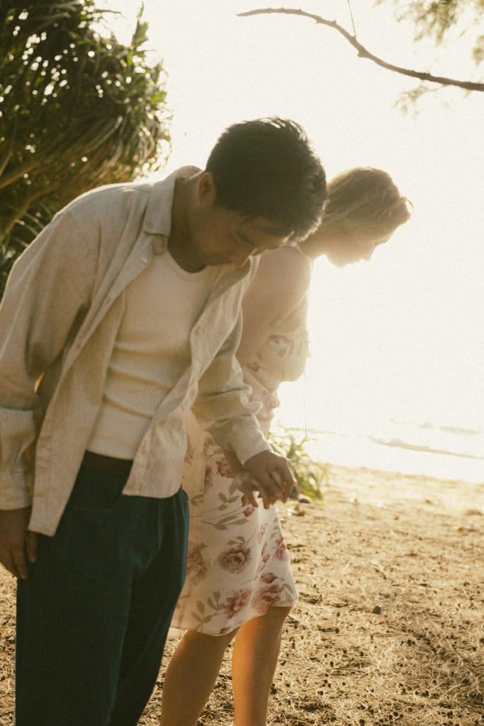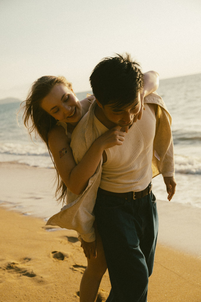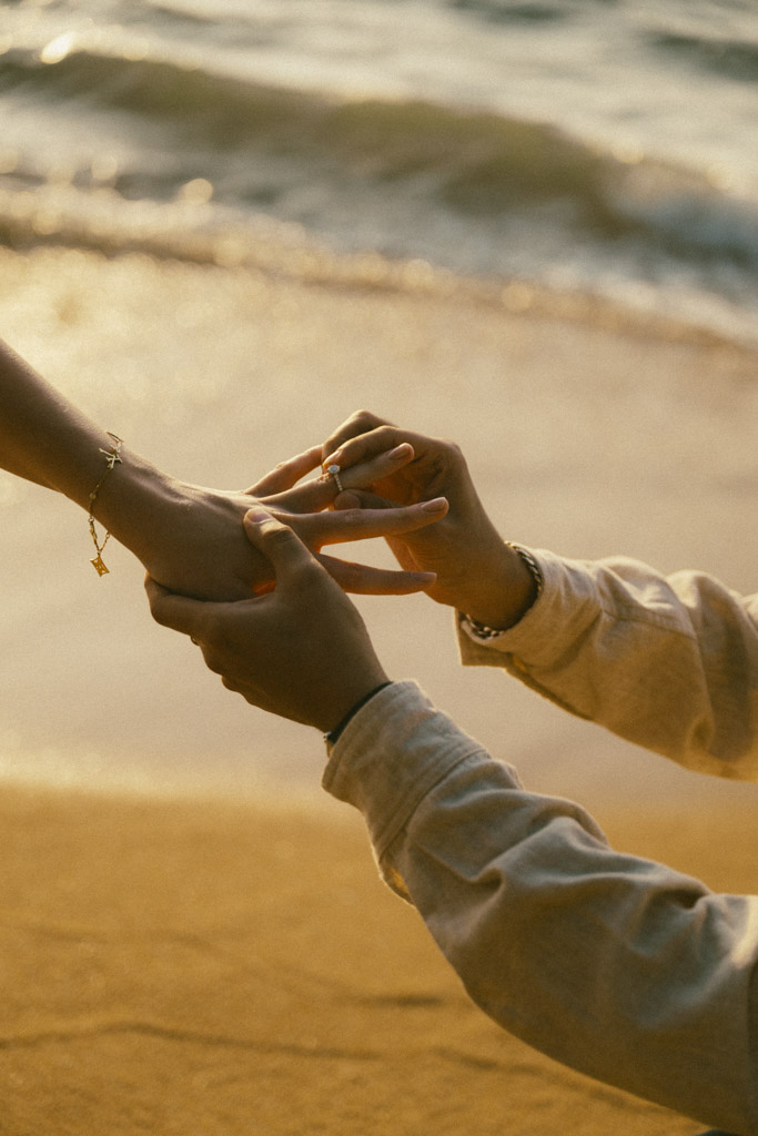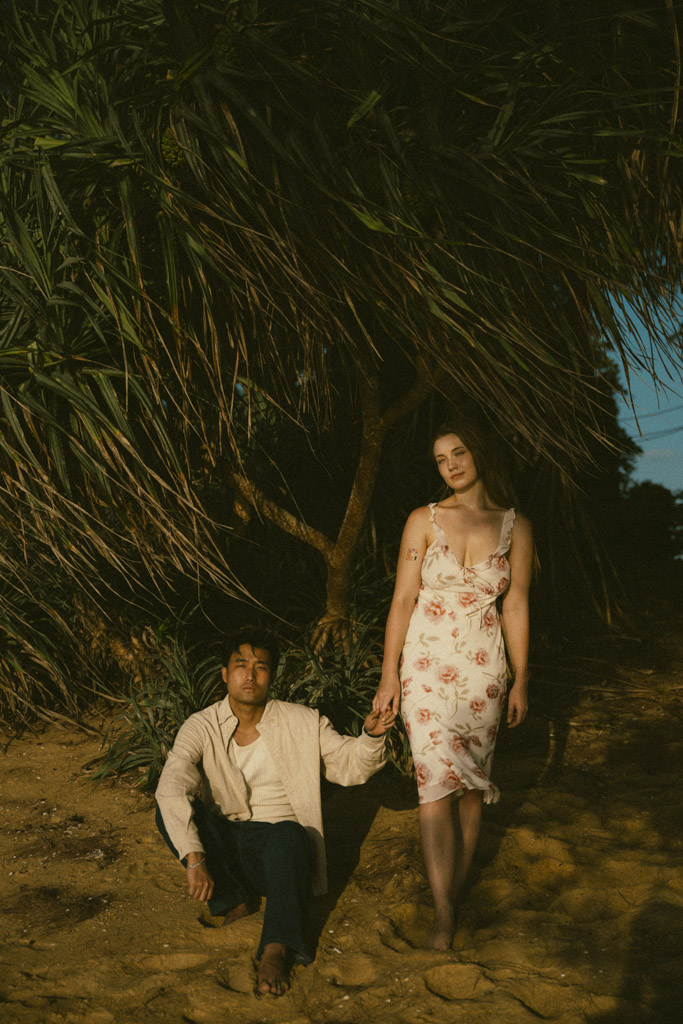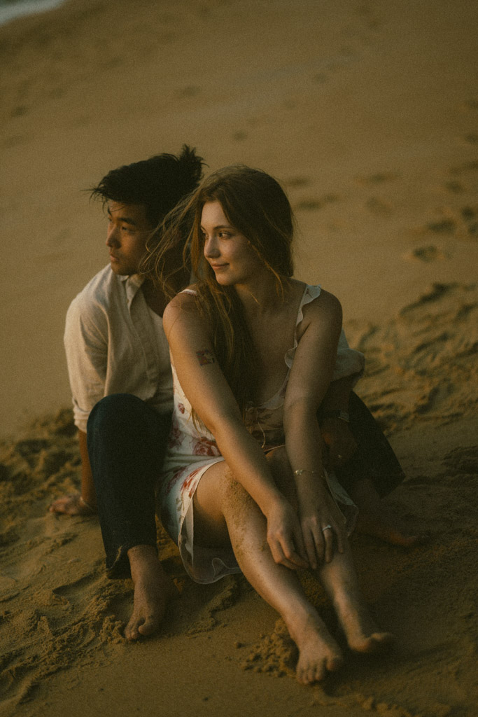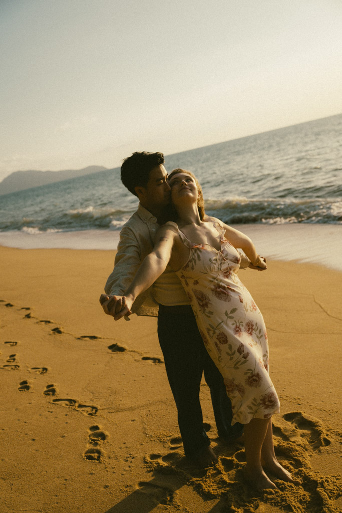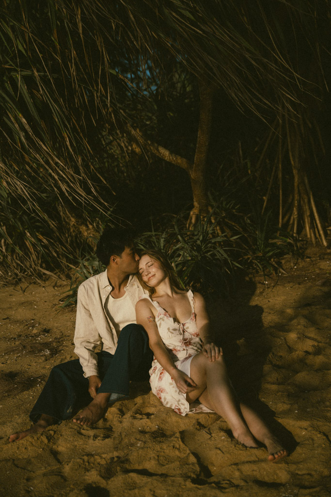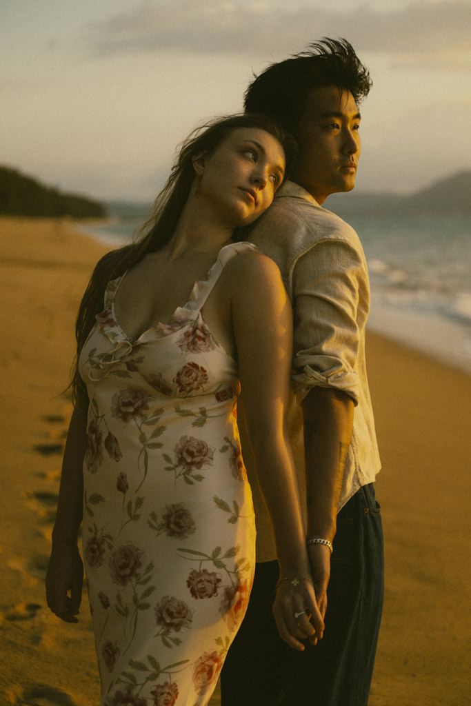 Phuket proposal photographer capturing romantic sunset beach engagement photoshoot in Phuket Thailand